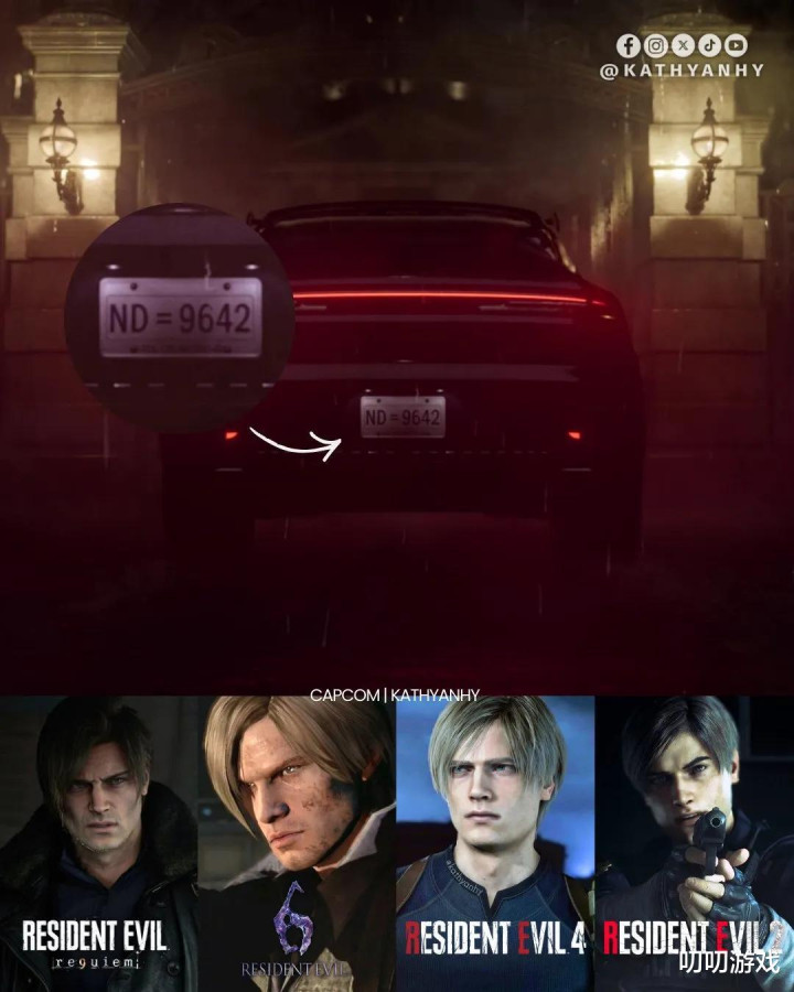 他开的保时捷车牌号ND=9642,则暗示里昂登场的游戏序号分别是2、4、6、9四部。